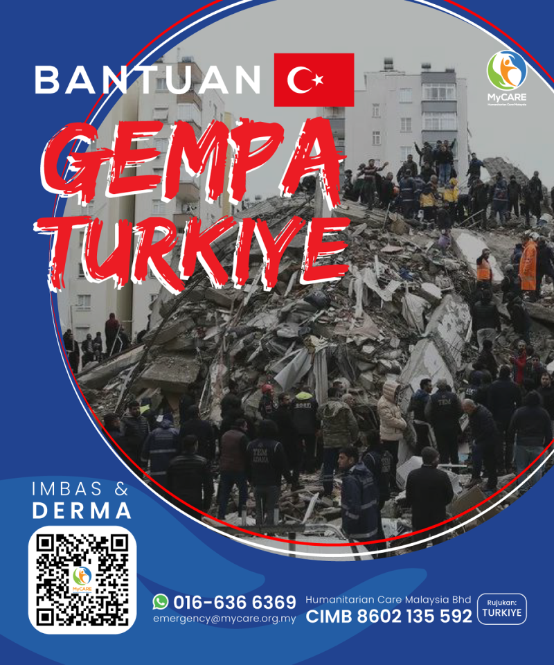 MyCARE akan menyalurkan bantuan kemanusiaan segera untuk fasa kecemasan ini dengan jumlah RM200,000 kepada mangsa-mangsa gempa bumi di Turkiye dan Syria.